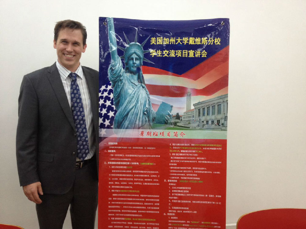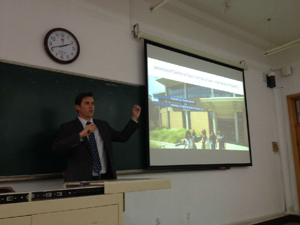 2015年11月10日下午1时30分,2016年度美国加州大学戴维斯分校员工交流项目宣讲会在昌平校区端升楼106成功举办。本次宣讲会的主讲人是美国加州大学戴维斯分校yl88858永利官网国际交流项目协调人,Charlie Lemcke。出席本次宣讲会的还有yl88858永利官网外事办马允博士、行政法所张力博士和信息办公室主任李仁燕老师。许多对交流项目感兴趣的同学也参加了本次宣讲会。