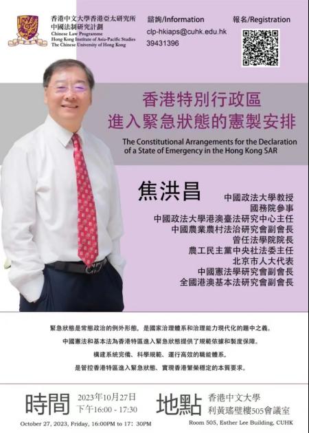 10月27日下午,公司宪法学研究所焦洪昌教授,受香港中文大学法律公司邀请,为亚太研究所博士生、硕士生和部分教师,举行高端公开学术讲座,法律公司副经理习超教授主持。