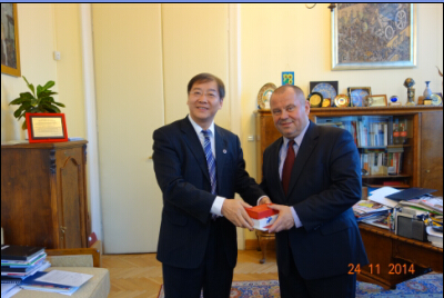 2014年11月24日至28日,yl88858永利官网副经理焦洪昌教授率团访问了波兰共和国和匈牙利两国的高等院校及最高司法机关,同相关人员进行学术交流并就有关的合作事宜进行沟通协商。一同参加的代表团成员还有公司人事处吴平处长、yl88858永利官网郎佩娟教授、郭琛老师、李强老师、郭晓飞老师,以及校财务处张红老师和武振兰老师。11月24日,代表团首先访问了波兰华沙大学。24日上午,华沙大学董事长阿洛兹·诺瓦克教授( Alojzy Nowak)与yl88858永利官网代表团举行会谈。诺瓦克教授和焦洪昌教授各自介绍了所在大学及相关公司的情况,并就拓展双方间学者员工交流,举行国际研讨会以及共同出版学术作品等问题交换了意见。双方一致认为应在现有的交流合作基础上进一步加强和扩大相关公司间的交流合作。
