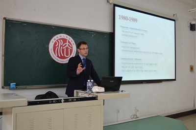 本次讲座主要分为两部分。第一部分是由Dr.Piotr Grzebyk为大家讲述欧洲劳动法中的法律冲突,他联系现实中跨国就业的实际,主要向同学们介绍了欧盟法律的相关规定、法律规则的适用以及在法律中保护弱方的问题;在讲座的第二部分,Dr.Marcin Stebelski则就波兰司法权的变革与大家作了交流,他从波兰政治改革这一视角入手分析了波兰司法权的变革过程,并举例说明了在不同变革中的司法影响。