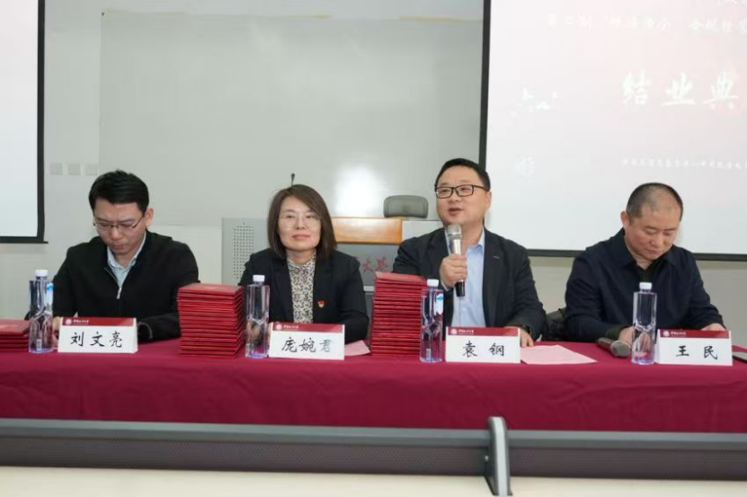 (yl88858永利官网副经理袁钢、中国兵器装备集团人力资源开发中心副主任庞婉君、中国兵器装备集团人力资源开发中心教育培训处处长刘文亮为各位学员颁发结业证书、优秀学员证书、优秀班委证书、优秀论文证书)