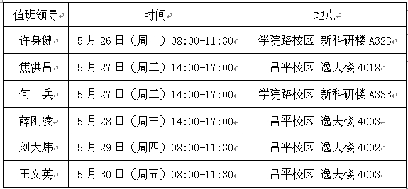 全院师生: 2014年5月26日至5月30日院领导接待日的具体安排通知如下: