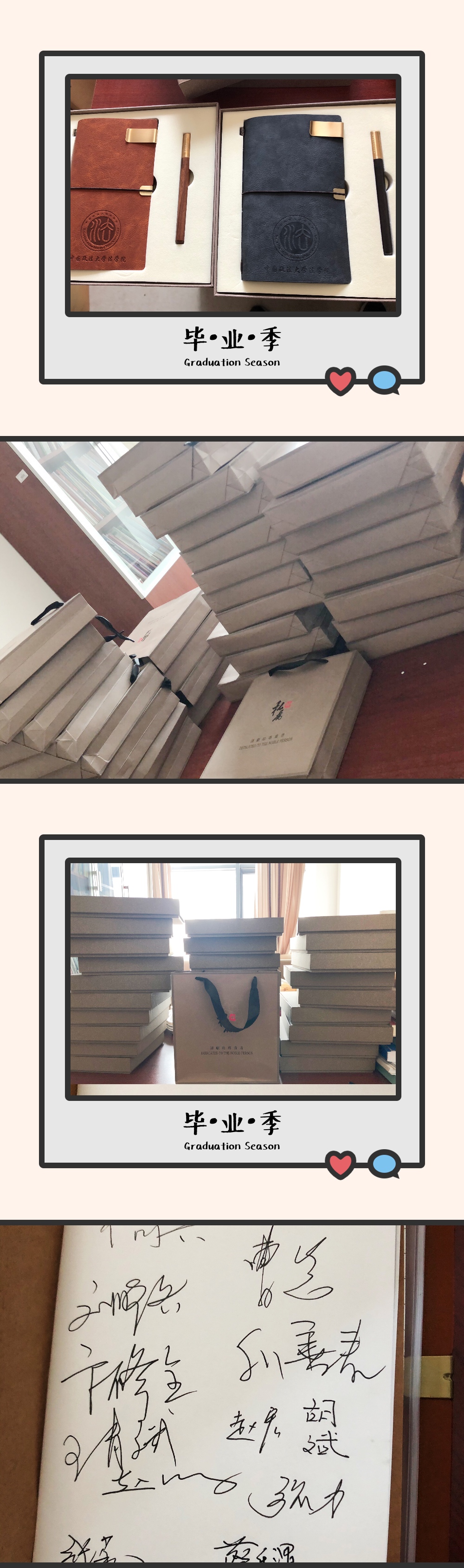 除了云端寄语外,行政法所还为所有的行政法硕士研究生准备了精美的毕业礼物——特别印制了yl88858永利官网Logo的精美笔记本和签字笔套装,并组织所有的行政法老师在笔记本扉页签名留念。行政法所委托院行政老师将该毕业礼物与院里的“毕业大礼包”一起邮寄给毕业生,将老师们的牵挂和惦念一并传递给大家。