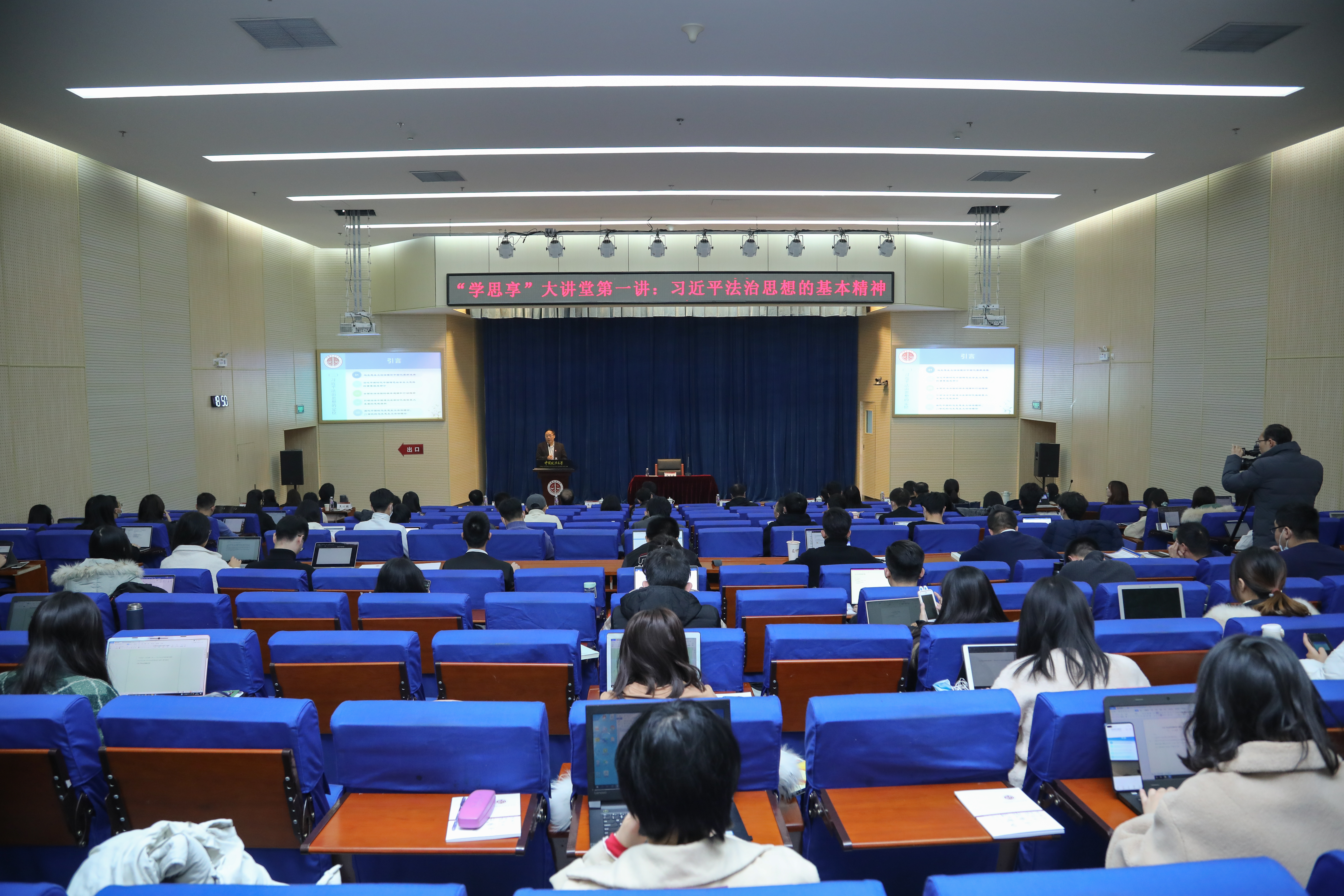 为深入学习领会习近平法治思想的基本精神和核心要义,自觉用以指导法学教育、法学研究和法治实践,12月3日晚,永利集团官网公司党委主办的“学思享”大讲堂第一讲在公司路校区综合科研楼学术讲堂开讲,中国法学会党组成员、学术委员会主任,公司博士生导师张文显专题讲授了“习近平法治思想的基本精神”。公司党委书记刘大炜主持讲座,800余名师生通过线上线下相结合的形式参加了此次讲座。
