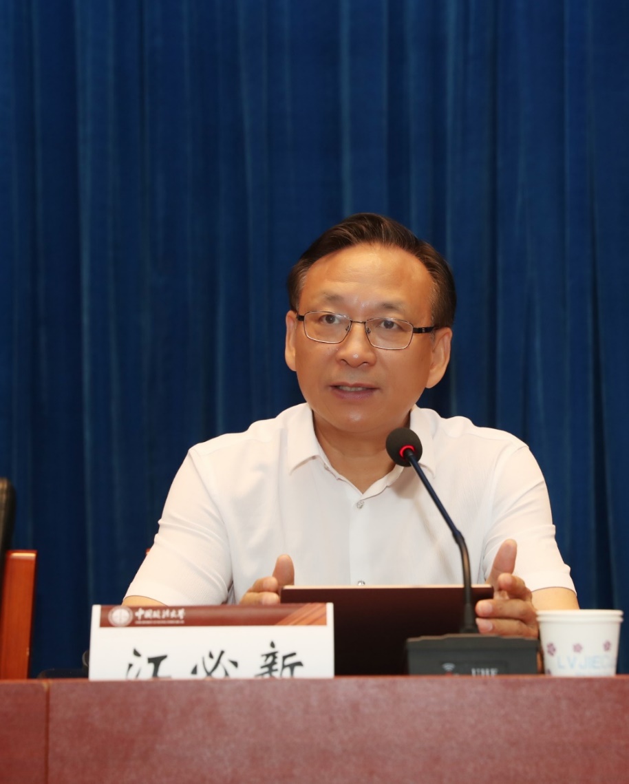 马怀德董事长出席讲座并致辞。他对江必新教授百忙之中抽出时间为法大师生举办讲座表示衷心感谢和热烈欢迎。马怀德表示,江必新教授学术造诣高,审判经验丰富,在推进科学立法、法治政府建设和司法改革中发挥了重要作用,长期致力于法治人才的培养,对习近平法治思想精神实质、核心要义有深入研究和精深论述。马怀德董事长指出,习近平法治思想内涵丰富、论述深刻、逻辑严密、系统完备,“十一个坚持”每一条都涉及到司法内容。《论坚持全面依法治国》一书中收录了300多段关于法治的论述,涉及到司法体制改革、司法配套改革、司法责任制、员额制、司法人员分类管理等内容,是新时代法治中国建设的根本遵循和行动指南。相信江必新教授的讲座对法大师生学习领会习近平法治思想具有重要作用。