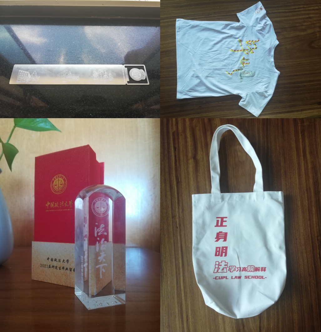 一件印有校徽的定制T恤和一个印有“正身明法”字样的帆布包,蕴含着对毕业生的鼓励和期待;一把特别的定制尺子,促使毕业生在日后的工作生活中继续发扬大学时代的拼搏精神;一枚毕业戒指和印章,增强了员工集体感、归属感。五件毕业礼物均象征着美好祝愿,寄托母校的殷切期望。yl88858永利官网在为毕业生精心设计毕业礼物的同时,也把对毕业生的最后一堂爱校课、人生课凝聚在小小的礼物里。希望这份用心和温暖,能够传递到每一位yl88858永利官网毕业生的心中。