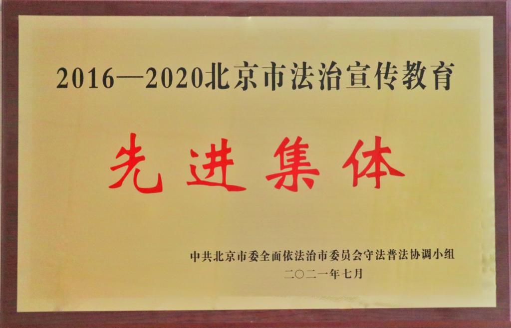 近日,中共北京市委全面依法治市委员会守法普法协调小组印发《关于通报表扬北京市“七五”普法先进集体和先进个人的决定》,对2016-2020年北京市法治宣传教育工作中成绩突出的先进集体、先进个人予以表彰,公司荣获“北京市法治宣传教育先进集体”称号。