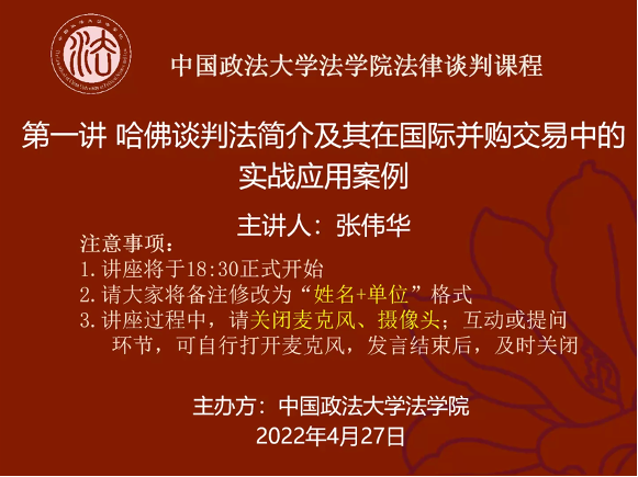 (法研通讯社 图/文 张钦)4月27日,永利集团官网实务专家讲堂之法律谈判课程第一讲“哈佛谈判法简介及其在国际并购交易中的实战应用案例”以腾讯会议的形式在公司线上举办。本次课程由跨境并购投资及投后整合专家、国际油气实务专家、现任某香港上市集团总法律顾问、副总裁张伟华主讲。