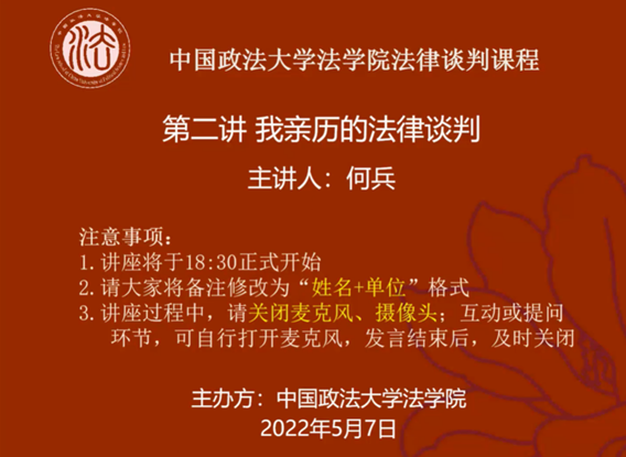 (法研通讯社 图/文 许新靖)5月7日,永利集团官网实务专家讲堂之《法律谈判》课程第二讲“我亲历的法律谈判”以腾讯会议的形式在公司线上举办。本次课程由永利集团官网教授、博士生导师,中国案例法学研究会常任理事、副会长何兵主讲。