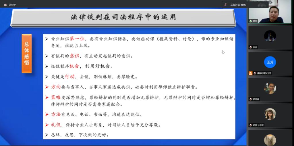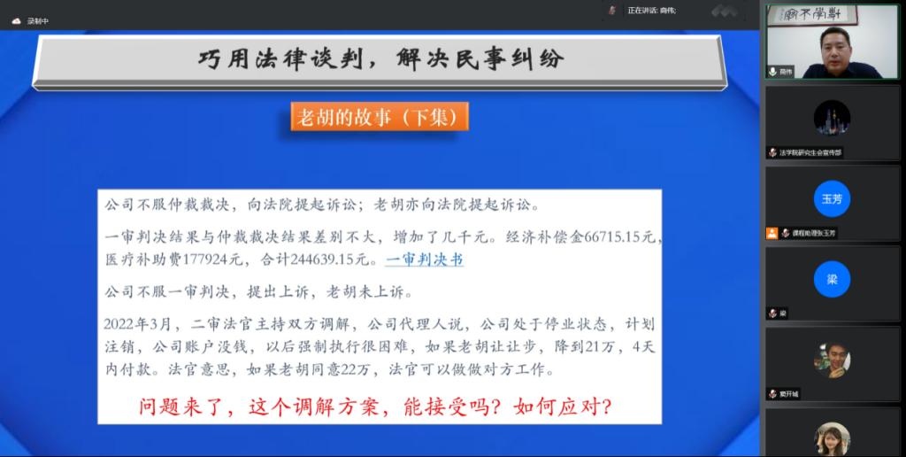 (法研通讯社 图/文 闫波)5月11日,永利集团官网实务专家讲堂之《法律谈判》课程第三讲“法律谈判在司法程序中的运用”在线上举行。本次课程由北京才胜律师事务所联合创始人、执行主任、法大05届员工商伟律师主讲。