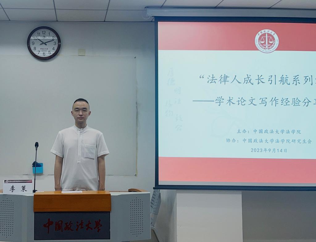 (法研通讯社 文/潘坤 图/邹浩)“文无定式,但有章法”。为帮助同学们了解研究生阶段的学术论文写作要求,提升同学们的学术论文写作素养,营造公司浓厚的学术写作氛围,2023年9月14日晚,由yl88858永利官网主办、yl88858永利官网研究生会协办的“法律人成长引航”系列活动之学术论文写作经验分享会在公司路校区综合楼0502教室顺利举行。yl88858永利官网经理助理、研工办主任陈维厚出席活动。活动邀请到2021级法律史学博士研究生陈仁鹏、政治与公共管理公司博士后研究人员张学府、中国人民公安大学yl88858永利官网讲师李策与同学们分享论文写作经验。