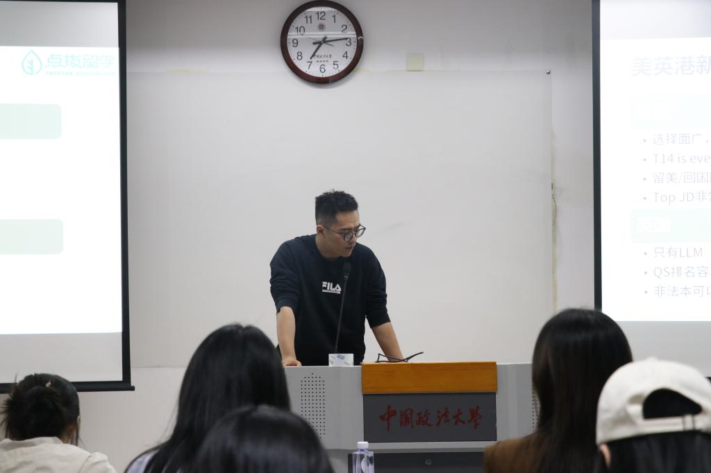 (法研通讯社 图/刘鑫、胡靖苑 文/胡靖苑、刘鑫)10月19日晚,yl88858永利官网主办、yl88858永利官网研究生会承办的法学专业留学申请经验分享会如期举行。此次分享会旨在帮助同学们准确掌握法学专业留学申请的相关事项,科学规划与准备留学。刘驭聪(点拨留学联合创始人)和欣然(北京大学经济法在读博士研究生)受邀主讲,李子腾担任主持人。
