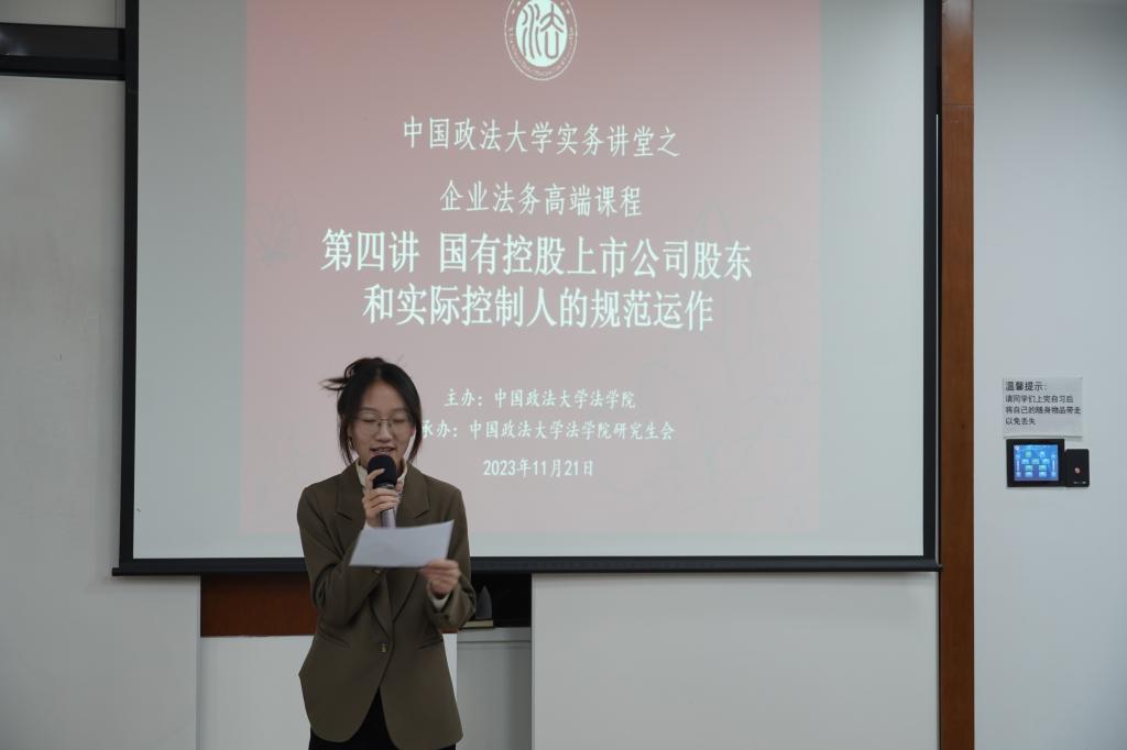 (法研通讯社 图/邢芳洲 文/徐毛毛)为提升卓越法治人才培养质量,实现优质教育资源共享、协同育人,2023年11月21日,永利集团官网实务专家讲堂之企业法务高端课程第四讲之“国有控股上市公司股东和实际控制人的规范运作”在公司公司路校区举办。本次课程由中国诚通控股集团纪委委员、金控管委会委员、法律合规部总经理何建祥主讲,由余媛媛同学主持。