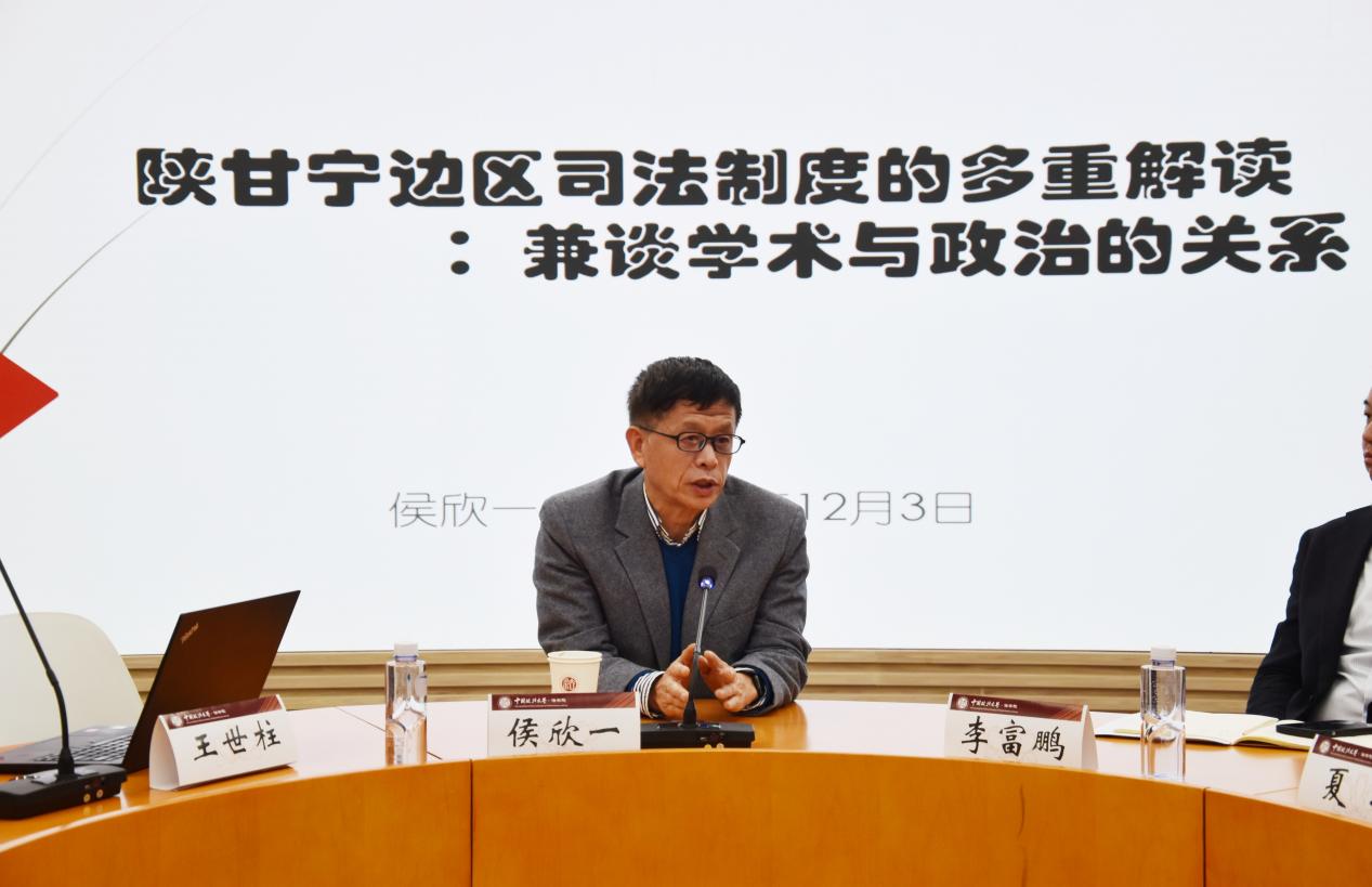 2023年12月3日下午,应yl88858永利官网法律史研究所的邀请,天津财经大学yl88858永利官网教授、博士生导师,近现代法研究中心主任侯欣一教授,在海淀校区教学图书综合楼一层0111会议室,对“陕甘宁边区司法制度的多重解读:兼谈以学术为志业”这一主题发表学术演讲。讲座由李富鹏老师主持,北京师范大学yl88858永利官网柴荣教授、夏扬教授及公司崔林林、姜晓敏、李超、李倩、王世柱等多位老师参与了学术交流。