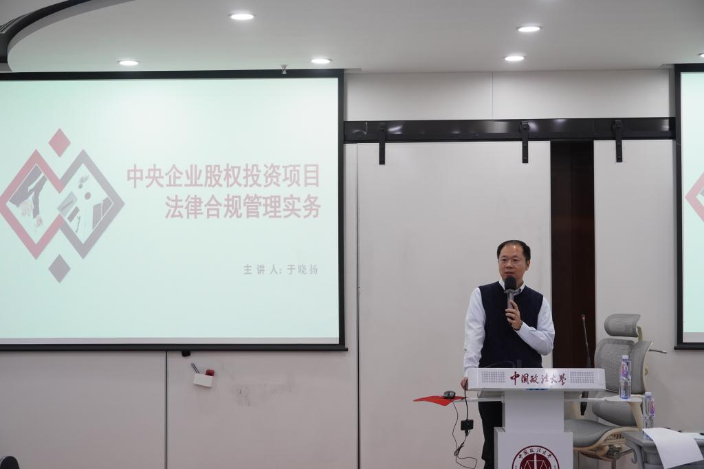 (法研通讯社 图/邢芳洲 文/徐毛毛)为有效提升公司产品质量和水平,以优质实务经验开拓员工眼界、引导员工成长,2023年12月5日,永利集团官网实务专家讲堂之企业法务高端课程第六讲之“中央企业投资项目法律合规管理实务”在公司公司路校区举办。本次课程由国家开发投资集团有限公司法律合规与风险管理部副主任于晓扬主讲,由丁凌枫同学主持。