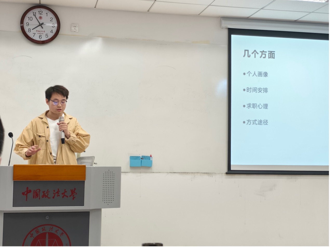 李宇迪向同学们分享了国考、省考以及国企面试中的备考经验,在向大家介绍备考期间的时间安排、用人单位招聘信息获取、面试技巧等经验的基础上,他还与大家深入探讨了求职心态的调整这一重要问题,提醒同学们要有“但行好事,莫问前程”的精神,不要轻易被外界因素所影响。