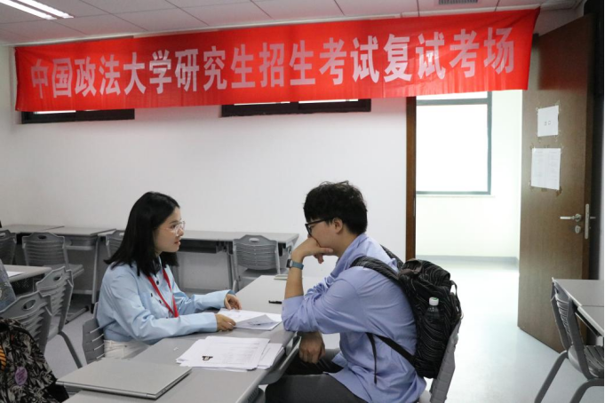 大量志愿者同学参与复试工作,他们认真负责、热情服务,以高度严谨的态度和无私奉献的精神确保了复试流程的顺畅进行。考核老师一丝不苟,耐心负责地面试考生,对考生基本能力、专业知识、科研能力、综合素质进行了全面考察;研工办老师时刻关注复试进展,跟进工作全流程;答辩秘书提前布置考场,维持现场秩序并做面试记录;后勤组提前准备相关物资,预定盒饭。每位工作人员都坚守在自己的岗位,展现了法大人兢兢业业、无私奉献的精神风貌。