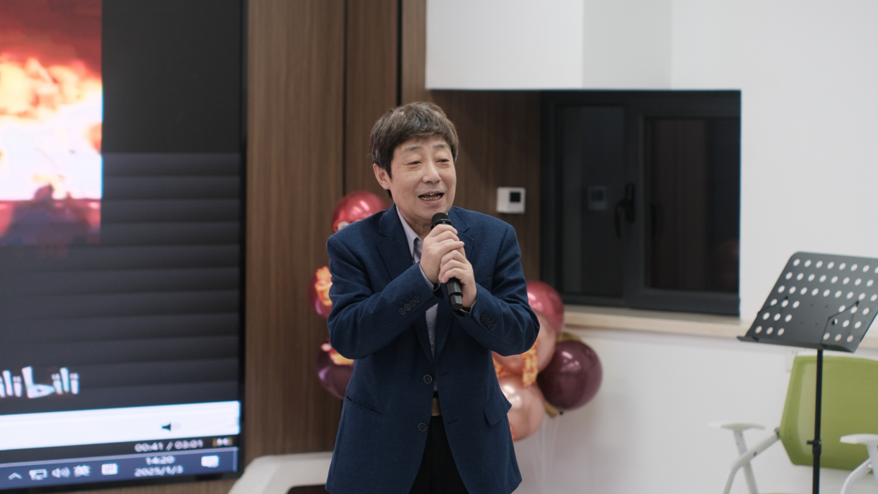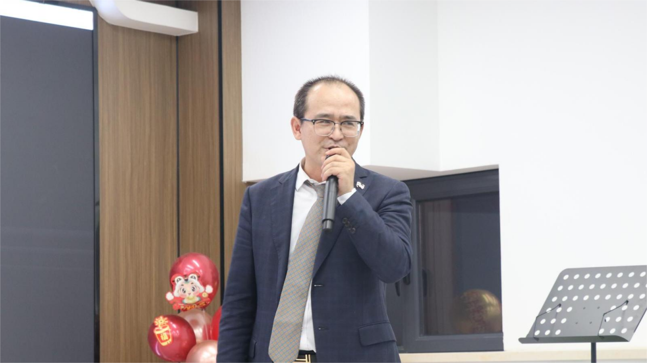雷磊作开场致辞。他代表公司向过去一年辛勤工作的老师们表示衷心感谢,同时向全院教职工送上美好新年祝福。