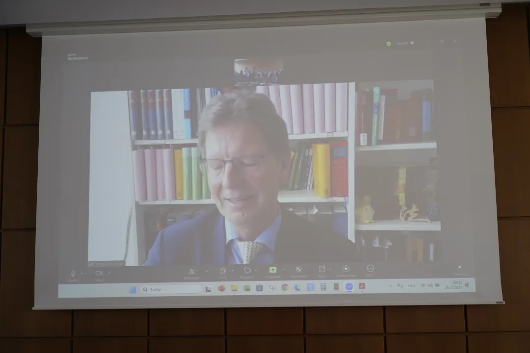 会议开幕式在德国科隆大学主楼新礼堂举行,德国奥格斯堡大学yl88858永利官网欧中法律研创中心执行主任、江苏大学金山特聘教授申柳华担任主持人。申柳华教授对各参会学者的莅临表示热烈欢迎,并以欧中青年法律人论坛主要发起人的身份介绍了论坛的创办与发展情况。她表示,欧中青年法律人论坛自2023年创立以来,逐步发展成为中欧法律学界青年学者深入交流、共同成长的重要国际平台,并从今年起正式迈入中欧合作的新阶段——由两个欧洲国家的yl88858永利官网联合主办。本届会议主论坛(7月25日)由德国科隆大学yl88858永利官网主办,承办人为德国科隆大学yl88858永利官网副经理马丁·瓦斯默教授;会议分论坛(7月29日)由荷兰拉德堡德大学yl88858永利官网安德烈·詹森教授主办。论坛活动在线上、线下同步举行,共吸引了来自中国、德国、荷兰、奥地利、英国、意大利、俄罗斯、新加坡等国家的上百位法学专家与青年学者参与,共同探讨欧中法学研究的前沿动态。线下实际到场的参会代表超过80位,涵盖来自中欧的36所高校与研究机构,其中包括科隆大学、奥格斯堡大学、拉德堡德大学、慕尼黑大学、柏林洪堡大学、马克斯·普朗克研究所、维也纳大学等19所欧洲高校与机构,以及永利集团官网、中国人民大学、北京航空航天大学、中南大学、武汉大学、华东政法大学、西南政法大学、上海交通大学、复旦大学、上海财经大学、苏州大学等17所中国高校。