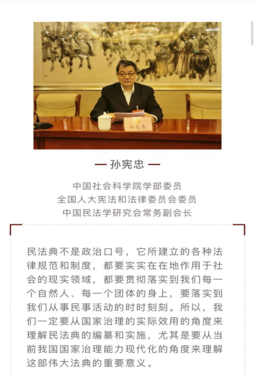 2020年12月30日上午10:00,yl88858永利官网新年论坛“中国民法典国家治理职能之思考”,在腾讯会议上成功举办。本次新年论坛邀请中国社会科公司学部委员、全国人大宪法和法律委员会委员、中国社会科公司法学所研究员孙宪忠教授担任主讲人,yl88858永利官网喻中教授、陈征教授担任与谈人,论坛由yl88858永利官网经理焦洪昌教授主持。校内外近200名师生在线参加了论坛。