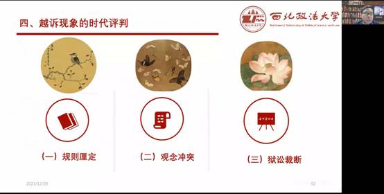 2021年12月28日,“道法古今”讲堂第三十八讲《禁令·特例·惯例:宋代越诉之法新解》在线上顺利举办。本次讲座由西北政法大学法治公司经理、法律硕士教育公司经理陈玺教授主讲,yl88858永利官网张德美老师、京都大学法学博士海丹老师、山东大学yl88858永利官网李云龙老师参加与谈。讲座由yl88858永利官网谢晶老师主持,校内外一百五十余位师生在线参与了本次活动。