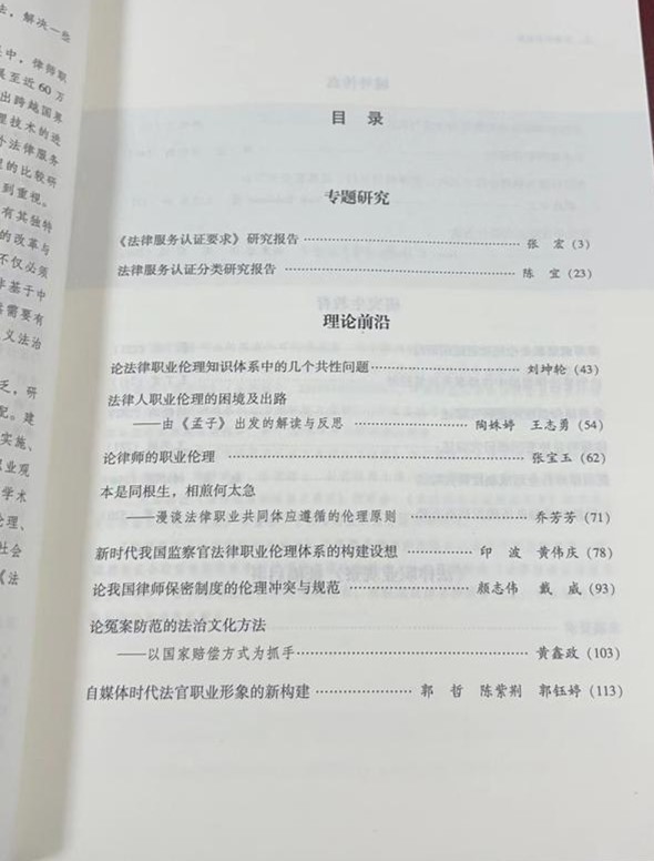 “专题研究”版块刊录了中国质量认证中心牵头承担的国家重点研发计划项目 NQI课题 《技术、信息和专业知识密集型服务的认证整体方案研究》 (课题编号:2016YFF0204105),永利集团官网律师学研究中心承担的子任务 《法律服务认证方案研究与应用》的两篇结项成果;“理论前沿”旨在整合研究力量,完善理论体系。刊录了来自国内学界和实务界作者撰写的8篇关于法律职业、法律职业伦理学术论文;“域外传真”版块以开放的心态、开阔的视野、审慎的目光聚焦到域外法律职业及法律职业伦理的最新发展。“研究生教育”版块,选取了永利集团官网法律职业伦理专业部分硕士研究生学位论文的精简版和研一员工的研究综述论文。研究生教育着眼于人才培养,通过对各种现实法律职业中存在的问题剖析、研究,提升研究生理论联系实际能力及学术研究能力。