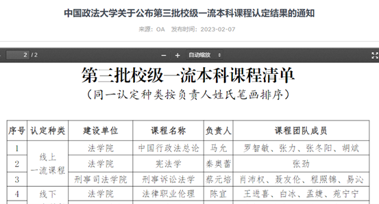 2020年法律职业伦理团队申报了校级一流本科课程,在建设年度教学改革卓有成效,关键在于思想重视、形成制度、模式创新。