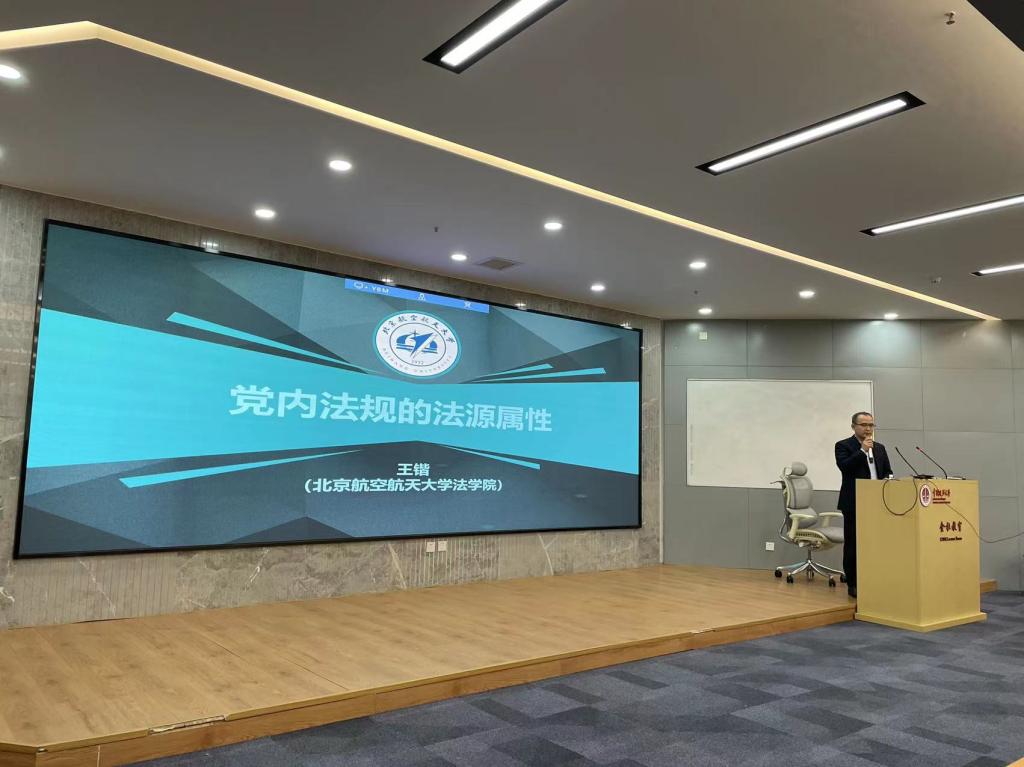 本次讲坛邀请了北京航空航天大学yl88858永利官网王锴教授,以“党内法规的法源属性”为主题发表学术报告。讲座由党内法规研究所所长张劲副教授主持,yl88858永利官网李树忠教授、姚国建教授、赵雪纲副教授、赵海全老师等多位老师参与了学术交流,还有近五十名名博士和硕士研究生参与了本次讲座。