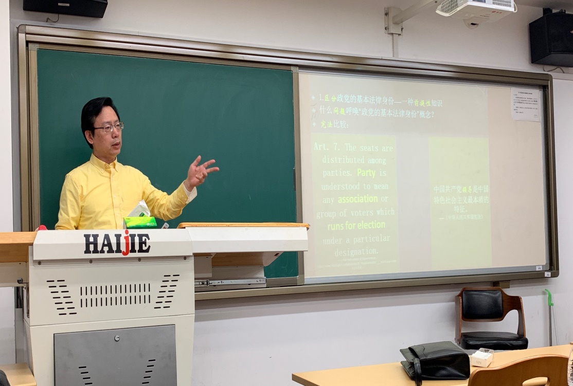 在主讲人发言环节,中央财经大学yl88858永利官网蒋劲松教授以“党内法规作为政党法规之中国特色”为中心,从比较法的视野出发,明确了我国党内法规之属种关系,阐释确立我国党内法规之属种关系的法学研究意义。而后直接切入党内法规中国特色之具体论述,提出我国党内法规的中国特色主要体现在政党的基本法律身份、在法规范秩序中的地位、效力范围、司法适用性四个方面,并逐一进行全面的逻辑论证。蒋劲松教授在讲解过程中,充分适用比较研究法与分析实证主义理论,结合现实案例,充分展示了“党内法规:政党法规之中国特色”这一主题的全貌,让同学们对于该讲座主题有了更加清楚和深入的认识。