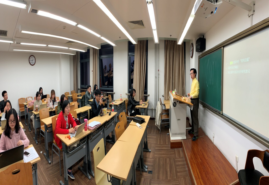 2019年3月19日晚,yl88858永利官网于公司公司路校区科研楼A203教室成功举办“党内法规:政党法规之中国特色”主题讲座。本次主题讲座有幸邀请到了中央财经大学yl88858永利官网蒋劲松教授担任主讲人,永利集团官网宪法研究所秦奥蕾教授与永利集团官网和中央财经大学的多位博士、硕士同学参加了讲座。