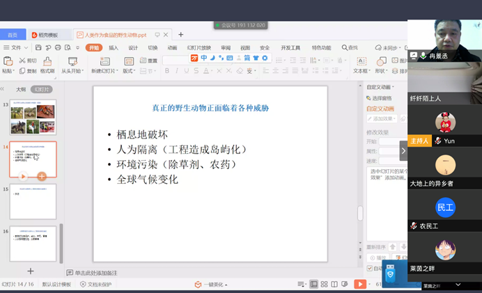 冉景丞研究员指出人类发展史就是人类与野生动物的博弈史,基于此应该正确认识人与野生动物的关系。人类对野生动物的利用方式主要包括食用、畜力(耕作、运输),以及催生宗教文化(崇拜与祭祀)等。在这一过程中,人类驯化了若干种类野生动物,这种驯化不仅促使动物种群得到了发展,而且还促进了人类文明的发展。他认为保护野生动物的前提之一为正确界定野生动物和人工繁育动物。当前,真正的野生动物面临着猎捕、栖息地破环、环境污染等种种威胁,厘清野生动物的范围对于提升野生动物保护的行政执法水平具有重要意义。他总结道,人工繁育动物的存在具有重要意义,我们对野生动物与人工繁育动物应该进行分策管理,针对野生的,要加强保护、监测、研究与管理;针对人工繁育的,要提高执法水平,应当借助大数据等科技手段进行有序化管理。