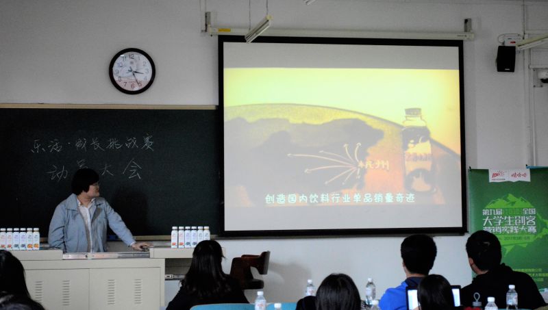 随后,娃哈哈工作人员向同学们介绍了娃哈哈全国老员工创意营销实践大赛的相关内容。通过沙画视频、工作人员生动的讲解以及往届大赛的精彩回顾,同学们了解了娃哈哈集团的基本信息,深入领会大赛宗旨,明确大赛要求。此外,工作人员向同学们分享了往届参赛同学新颖的营销方式,对大赛产品、策划方案的书写、营销方法、营销过程中的具体问题等进行了相应的指导,针对同学们提出的问题进行了解答。