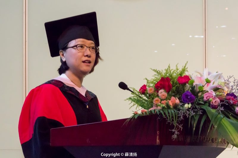 接下来,教师代表秦奥蕾老师发表了演讲。秦老师深切期望广大毕业学子,坚持法治初心、传承法治理想、献身法治建设,做正义的传承者践行者和创造者。她同时鼓励同学们,要相信自己带着使命而来,相信自己带着使命而往,相信人格,相信真理,相信正义,在喧嚣中保持理性,于纷扰间恪守良知,努力成为最好的自己!