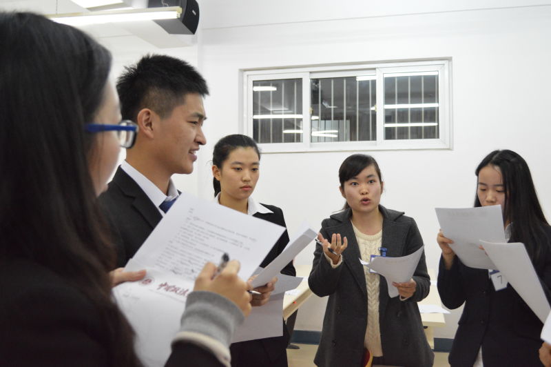 随后进入到自由讨论环节。在各自约定好分工和时间安排后,选手们立即围绕案例任务展开讨论。在本环节里,选手们面对面进行交流,依次有序发表观点,各自陈述自己的想法,努力寻求观点认同。随着交流深入,讨论进入到白热化阶段,选手们渐入佳境,展开了不少精彩的诘问质疑,各种观点摩擦的火花在此绽放,为本次比赛增添了缤纷的色彩。