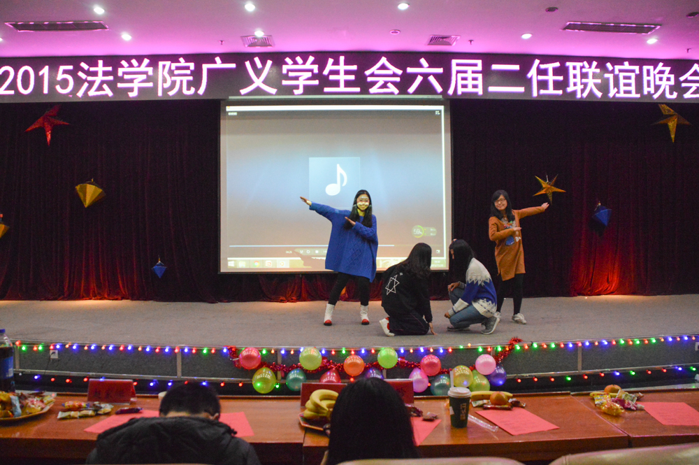 接下来,每个部门都为大家带来了各自精心准备的精彩节目。整场晚会气氛活跃,和乐融融,一个个美丽的插曲与旋律,汇集成交响乐般的丰富奏鸣。会场上的灯光,闪烁着点点滴滴的感动,紧紧吸引着台下的目光。一个个节目层层相叠,欢歌笑语夹杂着暖流涌入心怀。这样温暖的夜晚,甜蜜的交谈中缓缓摇晃出满世界的温柔。笑点满满的小品、精致美丽的舞蹈、欢乐的合唱、出人意料的剧情逆转,一幕幕扣人心弦,我们看到的是小伙伴们娱乐大家的精神与勇气,更是学委会秘书处的相拥相依;是优秀办公室永远一家人的温馨;是森林有爱,千秋万代的期冀;是拉风学术部,拉风学术人的品质;是最美遇见,缘聚实践的美好;是外联陪你到世界尽头的诺言;是艺林对精品不懈追求的精神,是最美倾听的幽幽吐芳,是学发一发冲天的勇气;是体委会携手并行的坚守;是被员工会大家庭环抱的温柔。