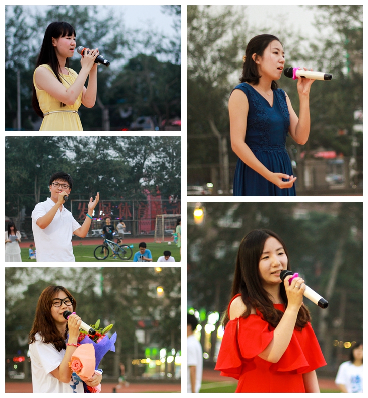 歌会的最后,低年级的同学们送上了为即将毕业的师兄师姐们精心准备的歌曲,《蒲公英的约定》、《勇气》、《被风吹过的夏天》,一首首动听的歌曲,一张张真诚的笑脸,一句句真挚的祝福,滋润着毕业生们的心田。