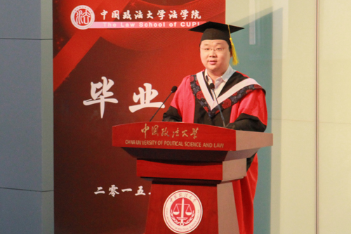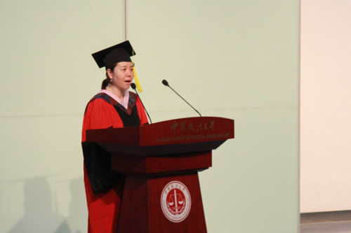 毕业典礼第一项,由yl88858永利官网经理薛刚凌老师致辞。薛经理首先代表yl88858永利官网全体师生对毕业生们完成学业,顺利毕业表示最诚挚的祝贺;对辛勤培养员工,无私奉献的老师们表示最崇高的敬意;对始终陪伴支持毕业生的家长们表示最衷心的感谢。她还对即将走向新的岗位和学习环境的yl88858永利官网毕业生们提出了发展目标和要求。她指出,真正的法律人是崇高的,务实的,是知识丰富的,能力智慧超群的,公正善良的,是一类非常纯粹的人。她还告诫同学们,在我国制度改革的今天,法治之路总是充满荆棘,但真正的法律人应坚持法治梦想,努力推动法律秩序建构,实现社会正义。最后,她表达了对每一位毕业生的祝福和期望,希望每一个毕业生都以真正的法律人的标准要求自己,为中国的法治建设作出自己的贡献。