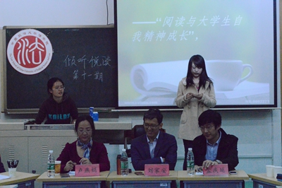 2014年10月20日晚7:00,由yl88858永利官网分团委主办、法学院员工会倾听栏目组承办的倾听·悦读第十一期——《读书这件事,由我们来告诉你》在昌平校区端升楼406举办,本期读书会邀请了永利集团官网民商法教授刘家安、永利集团官网人文学院老师卢燕娟、永利集团官网社会公司老师孟庆延担任主讲嘉宾。