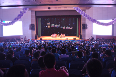 晚会还未开始礼堂里就早已坐满了人,整个礼堂被大家的热情所笼罩。在播放了一段为毕业生们精心准备的祝福视频后,毕业晚会正式拉开帷幕。