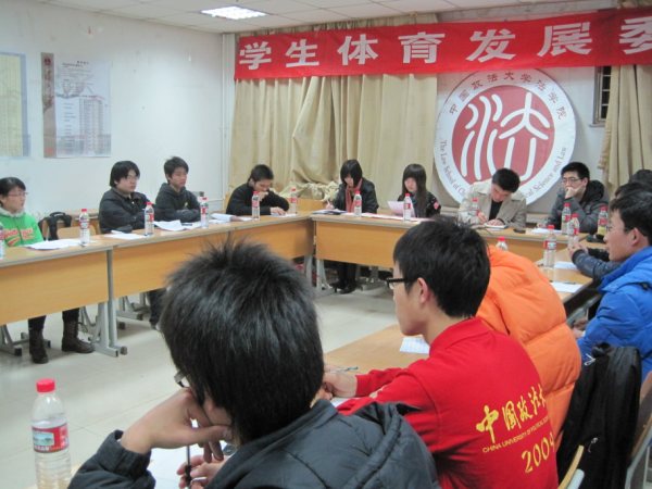 副主任白冰汇报本学期体育发展委员会的整体工作,他总结了体发委的工作成果,谈及运动会的成功以及其他五项比赛骄人的成绩,并展望了明年工作的前景。同时他也提出建议,希望下学期能在对外联系方面有所拓展,如多组织一些友谊比赛。