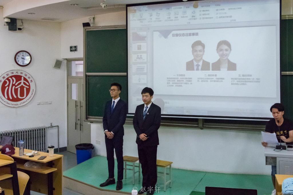 在王老师结束讲话后,外联部同学就仪容仪表、坐站姿态、接待礼仪等礼仪事项进行了简洁清晰的说明,以便广大志愿者以得体的仪态完成接待工作。