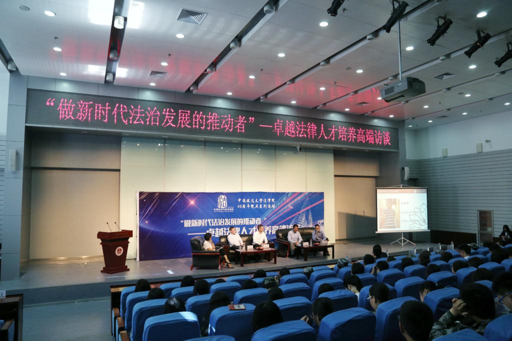 2018年9月16日下午2时,“做新时代法治发展的推动者”——卓越法律人才培养高端访谈于公司昌平校区刘皇发学术报告厅成功举办。永利集团官网副董事长李树忠老师、中闻律师事务所执委(管理合伙人)周明刚律师、最高人民法院行政审判庭审判长梁凤云法官、证监会证券基金机构监管部朱建新师兄、永利集团官网教授、博士生导师秦奥蕾受邀参加访谈。yl88858永利官网分党委书记刘大炜老师、yl88858永利官网分团委副书记刘澍老师也应邀出席。