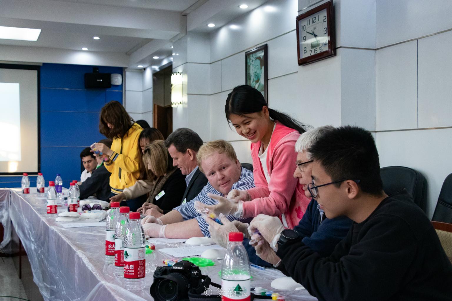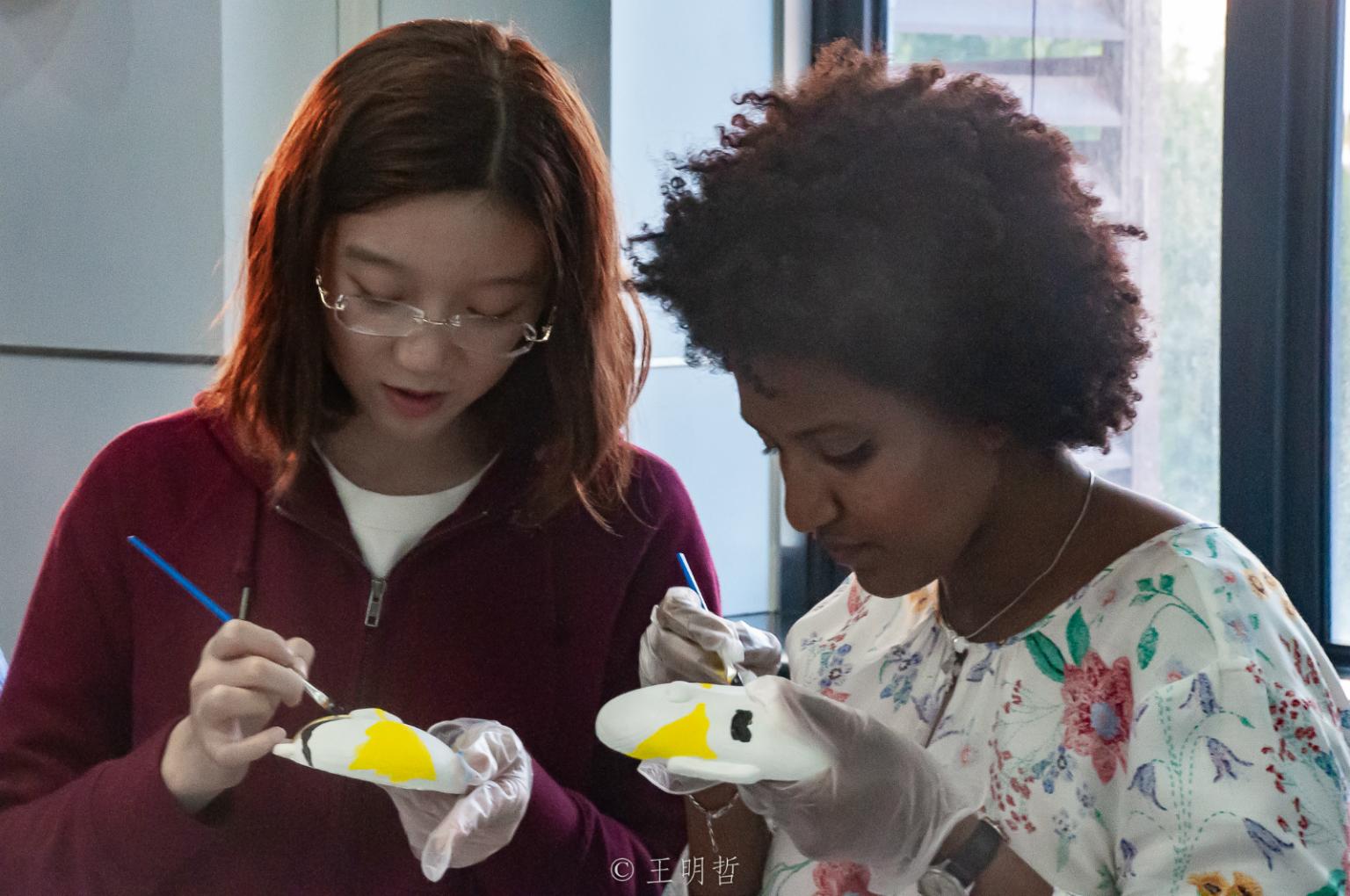 接着,活动进入自由交流环节。现场随机产生了由两名中方员工和三名澳方员工共同组成的讨论小组 ,并由中方员工向澳方员工介绍脸谱人物,共同完成了人物脸谱的绘制。