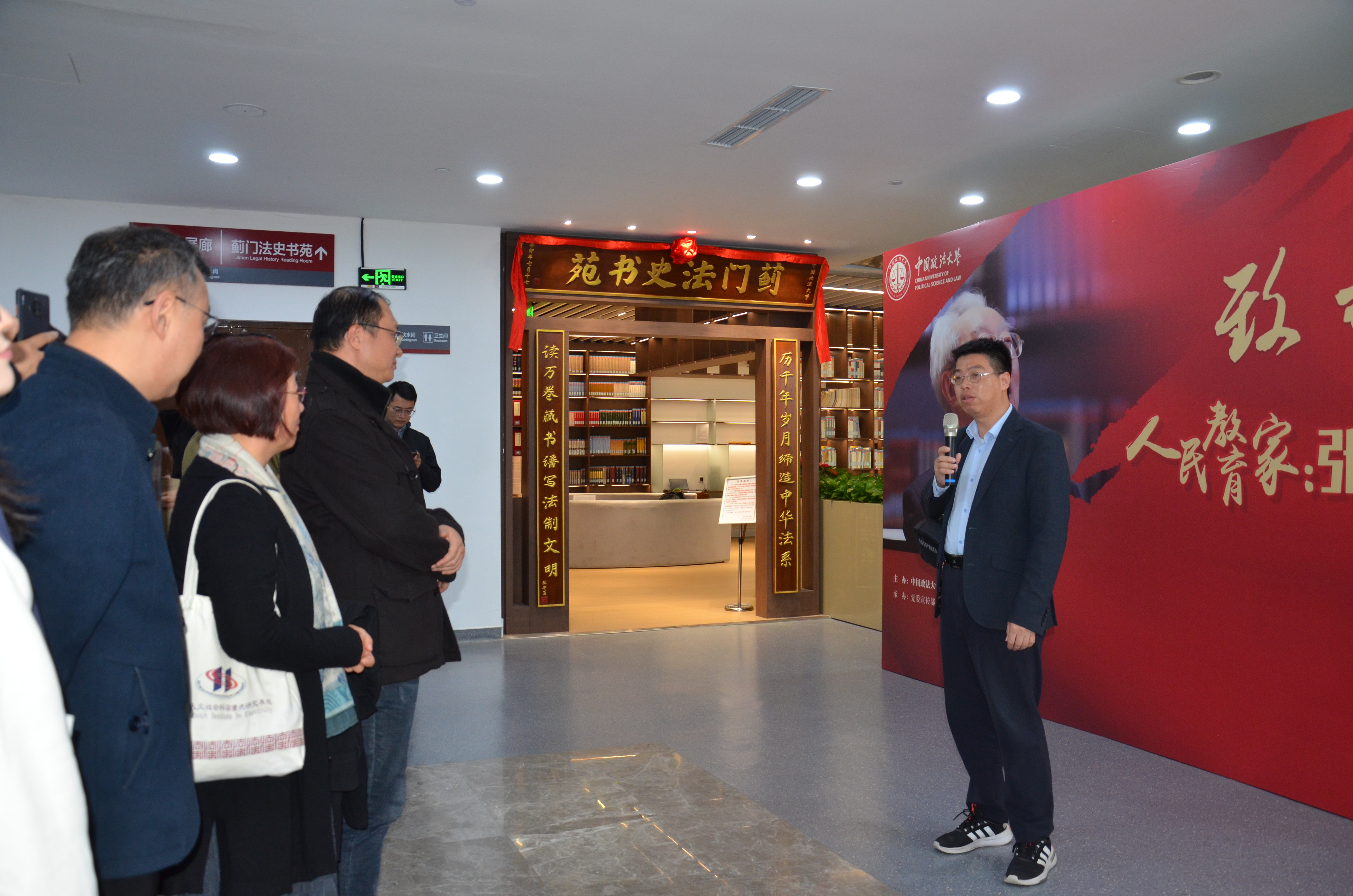 座谈会前,与会人员共同参观“致敬人民教育家:张晋藩特展”,法律史学研究院张京凯老师为大家作精彩讲解。与会师生深入了解了张晋藩先生的学术历程、教员工涯及其为法学教育事业做出的突出贡献,切身体悟了张晋藩先生学术贡献之卓越、教育情怀之深厚、法史人生之精彩。
