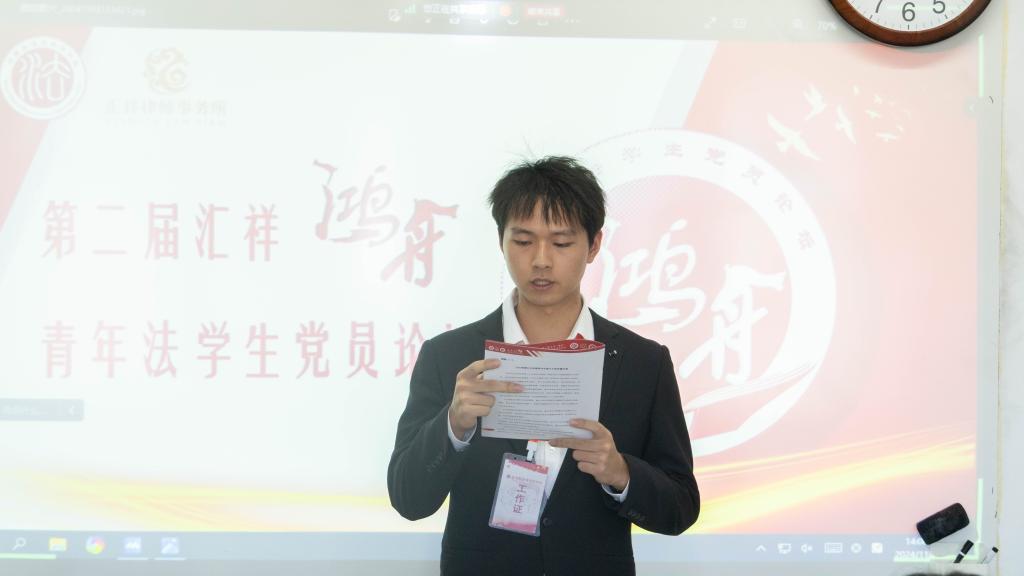 永利集团官网王春晓结合自身经历,阐释了青年党员与社会实践的双向成长,表示法学教育应与实践深度融合。北京大学周永康从“立足中国实际”“培养全球视野”“厚植家国情怀”三个视角分享了自己对青年法员工工作方向的见解。对外经贸大学杨丛睿表示要积极整合所学内容并将其应用于实践,向社会传递法学价值。山东大学姚家乐从“立德树人”角度出发,讲述了如何在法学教育中融入理想信念教育。北京交通大学雷子瑶就青年法员工如何处理当下与未来的关系,将自我价值与社会价值相统一阐述了自己的思考。中南财经政法大学黄辰宇从“思政引领”“守正创新”“时代重任”三个方面讲述了落实全国教育大会精神的具体做法。北京林业大学李浩宁以《中华人民共和国国家公园法(草案)》为例分享了自己对多学科融合的思考。西南政法大学王天玺结合个人经历和本校特色培养方案,呼吁青年党员勇担时代重任。国际关系公司李骏一从法学教育的新要求出发,探讨了青年法员工的责任与担当,并分享了本校国家安全教育师生宣讲团的创新与实践。