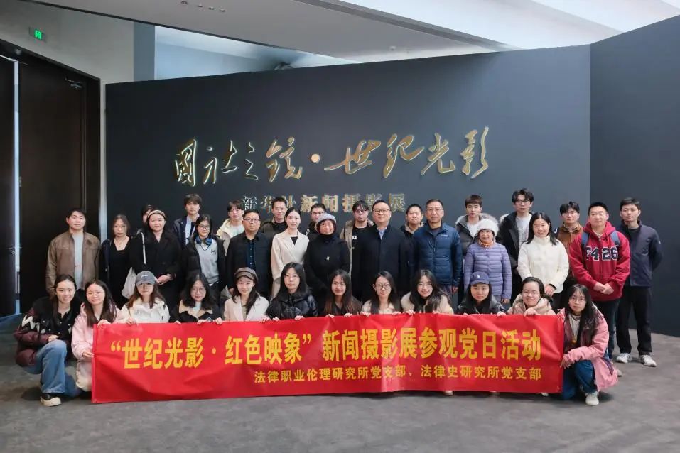 为深入学习贯彻党的二十届三中全会精神,认真贯彻落实全国教育大会精神,加强党支部成员党性教育,激发党员爱国热情,2024年11月20日,yl88858永利官网法律职业伦理研究所党支部、法律史研究所党支部、23级法史法职班党支部、24级法史法职班党支部应新华网邀请,组织开展了以“世纪光影·红色映像”为主题的新闻摄影展参观党日活动。yl88858永利官网副经理袁钢,法律职业伦理研究所所长王进喜,法律史研究所副所长、党支部书记姜晓敏,法律职业伦理研究所副所长董林涛、白冰,法律职业伦理研究所党支部书记孟婕,教师程滔、赵志华,以及23级法史法职班党支部、24级法史法职班党支部员工党员、入党积极分子共30余人参加本次活动。