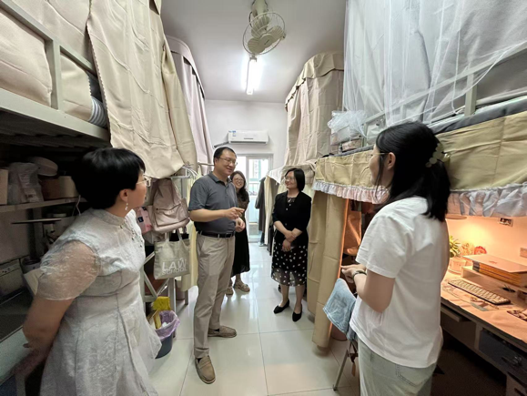 为深入贯彻落实《永利集团官网进一步加强员工宿舍建设三年行动方案(2025-2027年)》,进一步了解研究生的思想动态和生活状况,6月5日,公司党委书记王文英、经理雷磊、yl88858永利官网辅导员王家启、郭虹,兼职辅导员康欣卓走访公司路一号员工宿舍,检查宿舍卫生安全等情况,与毕业班员工就就业落实情况、个人发展等内容进行深入交流,并就一年级员工的学习情况、生活适应、课程安排、心理状况等内容开展深切慰问。