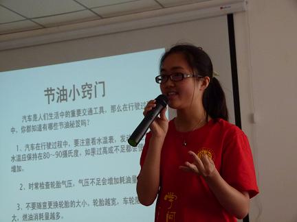 当日下午,宁馨苑社区党支部的负责同志们热情接待了我们29名员工党员、预备党员和入党积极分子,引领我们29名员工和社区的20多名党员同志来到宽敞明亮的社区活动会议室。下午两点半,活动正式开始,首先是社区六位阿姨们以优美的舞蹈作为开场节目,拉开了本次座谈活动的帷幕。接下来,由3班的四位同学依次就节能环保小窍门、废物巧利用、社区健康生活、知识竞答四个部分展开了一个半小时的宣讲,其间还和与会员工、社区党支部党员互动、讨论,气氛非常活跃。最后由3班的一位同学以一首二胡演奏曲《长城随想曲第二乐章——烽火操》为本次活动画上了圆满的句号。
