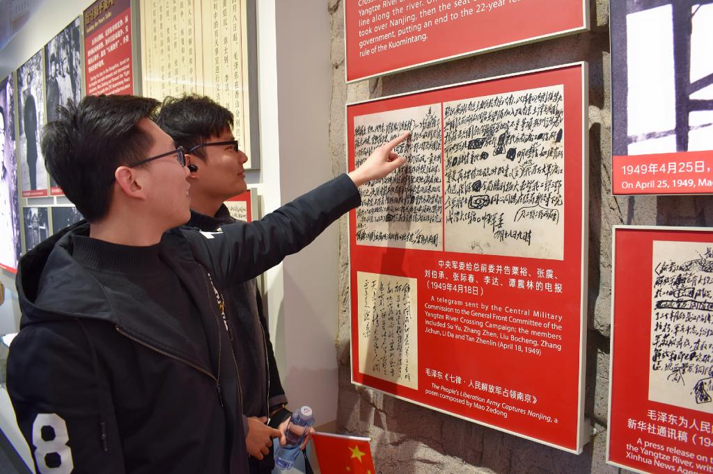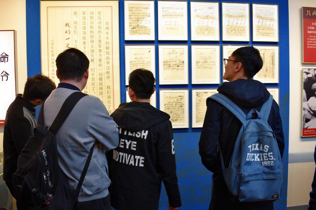 随后,同学们拾阶而上,参观第二部分——“毛泽东同志在香山”主题展览。展览通过一张张照片、一份份文件再现了毛泽东主席从1949年3月至10月在香山的点点滴滴。从指挥渡江战役,到筹备新政协;从运筹北平和谈,到孕育新中国……一桩桩一件件,无不体现着一代伟人的家国情怀。