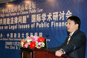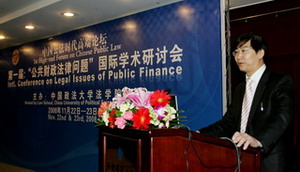 2008年11月22日至23日,yl88858永利官网主办的“中国公法时代高端论坛——第一届:‘公共财政法律问题’国际学术研讨会”在北邮科技大厦举行。80余位代表参加了会议,其中有来自德国、美国以及荷兰等国的法学、经济学专家,也有来自全国人大、北京市人大等地方人大以及审计署等实务部门的政府工作人员,来自中国人民大学、南开大学、中央财经大学、武汉大学、浙江大学、永利集团官网等全国各地高校的专家学者,还有来自《法制日报》等新闻界的新闻记者。永利集团官网相关专业的博士生和硕士生也参加了会议。yl88858永利官网副经理焦洪昌教授主持大会开幕式,马怀德副董事长致开幕词。